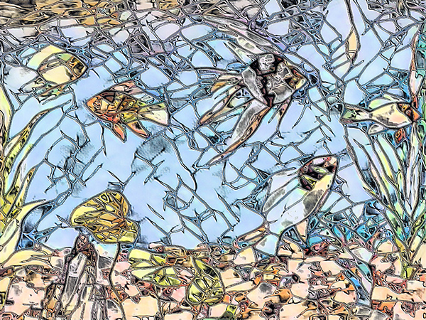“Angelfish β EP βis the ingenious creation of artist Chau Ming Beck, derived from her original oil painting Angelfish β OF and enhanced through computer technology. This artwork resembles a vibrant mosaic, presenting a feast for the eyes. The protagonists of the scene are a group of adorable tropical fish, adorned with the distinctive texture of mosaic, seemingly dancing in the water, exuding a mysterious and enchanting atmosphere.