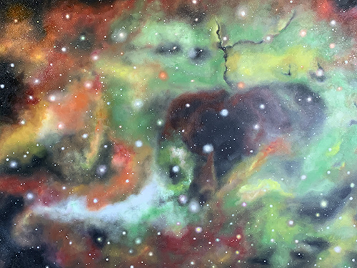 “Black Hole – OS” is an original artwork by artist Chau Ming Beck. Through artistic visualization, it presents the infinite expanse and mystique of the universe. Within this vast cosmos, countless planets form vibrant and colorful nebulae, which in turn compose magnificent cosmic seas. Each nebula and each cosmic river hold its own unique and beautiful story. However, within this spectacular universe exists a black hole, an immensely terrifying and powerful celestial body from which even light cannot escape.