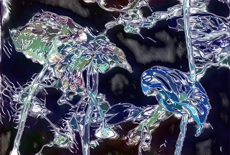 “Lotus – ER” is an enhanced masterpiece by the artist Chau Ming Beck, based on her original creation, showcasing a profound surrealistic style artwork. In this piece, under the cover of the night, the lotus pond exudes an air of mystique. The lotus leaves, intricately woven from silver threads, incorporate hues of blue, purple, and green stained glass, resembling an enamel artwork on canvas.