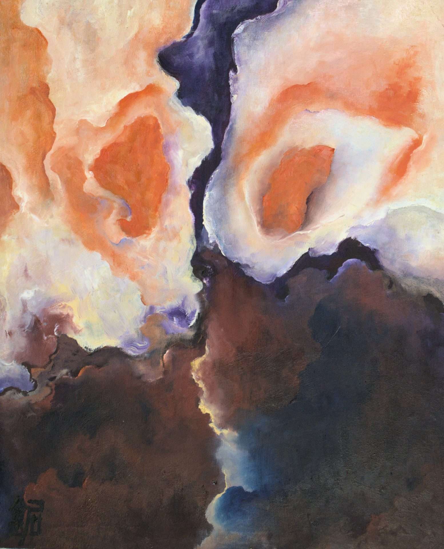 “Stone Lily – OL” is an original oil painting by artist Chau Ming Beck. Inspired by a naturally formed Rain Flower Stone, this artwork offers viewers a visual spectacle: two vibrant lilies bloom against the night sky, merging with nebulae to create a magnificent natural oil painting.